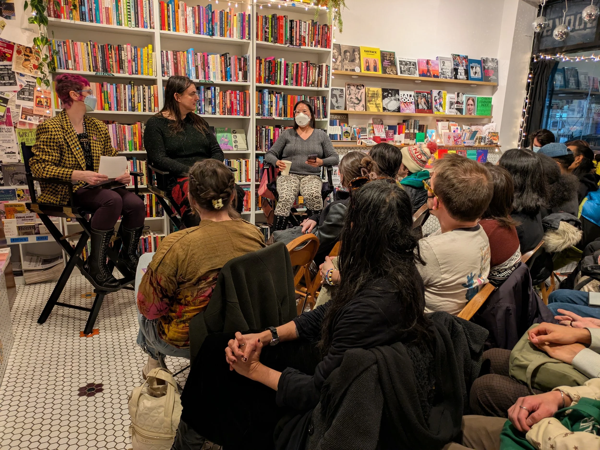 Margot Atwell, Jeanne Thornton, and Diana M. Pho at Hive Mind Books, February 2026. Photo by Nat Mesnard.